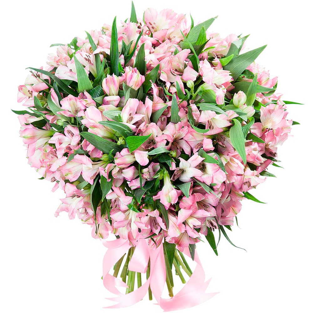 Альстромерия розовая 60 см. Упаковка (лента, пленка, крафт, сетка, пленка матовая)