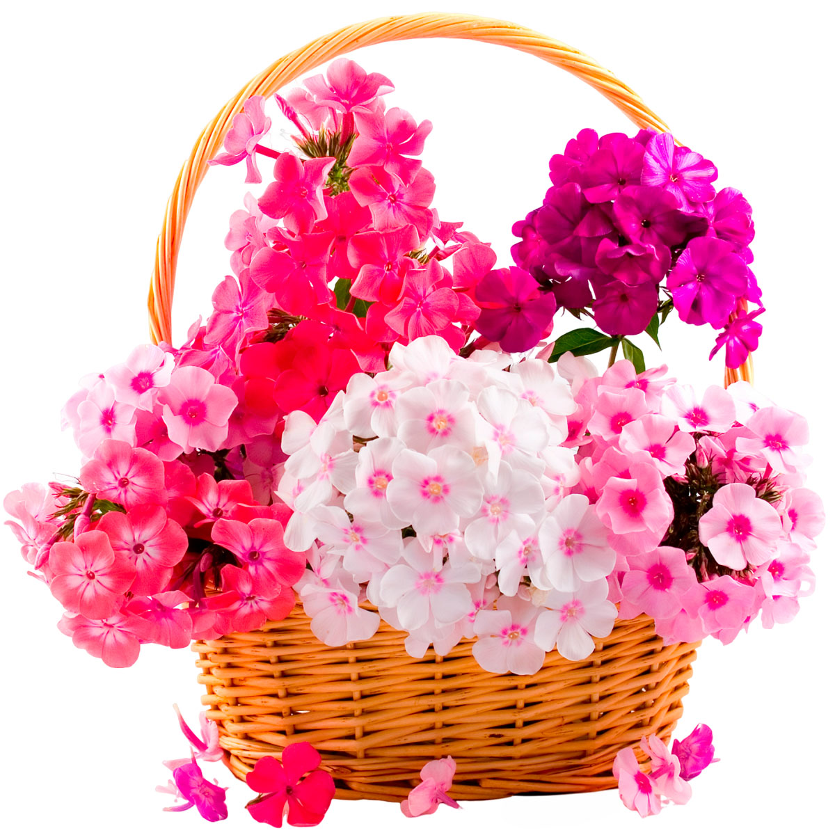 Флокс розовый, сиреневый и белый. Упаковка (Корзина, оазис, ящик).