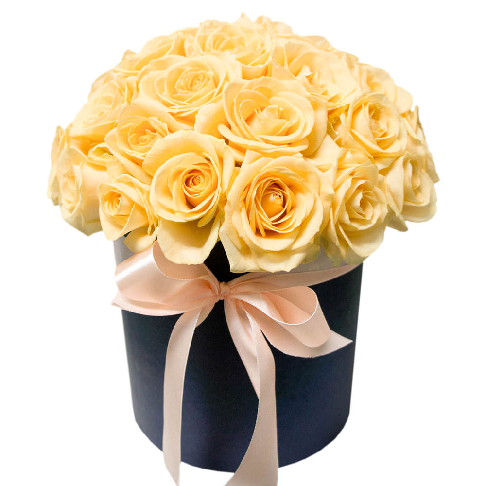Цветы в коробке «Кремовые розы» с доставкой по г Гурьевск (Кемеровская обл): вы можете купить букет в цветочном супермаркете «Флормания» по цене от 3290 руб.