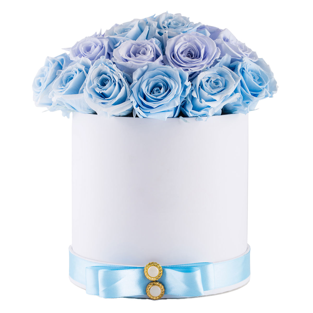 Роза одноголовая голубая. Упаковка (шляпная коробка, квадратный бокс, коробка сердце, оазис)