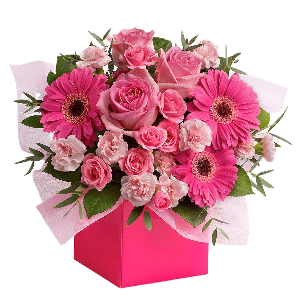 Цветы в коробке «Розовый микс» с доставкой по г Гурьевск (Кемеровская обл): вы можете заказать букет в цветочном гипермаркете «Флормания» по цене от 3290 руб.