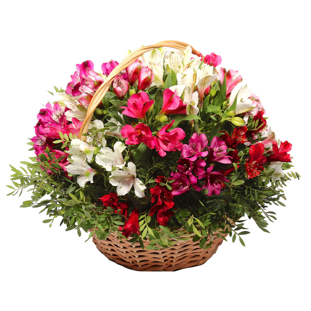 Цветы в корзинке «Краски альстромерий» с доставкой по г Гурьевск (Кемеровская обл): вы можете заказать букет в супермаркете цветов «Флормания» по цене от 3790 руб.