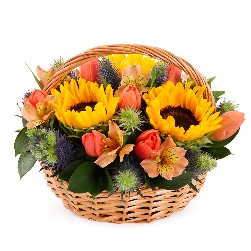 Цветы в корзинке «Солнечный день» с доставкой по г Гурьевск (Кемеровская обл): вы можете заказать букет в цветочном интернет-магазине «Флормания» по цене от 3790 руб.