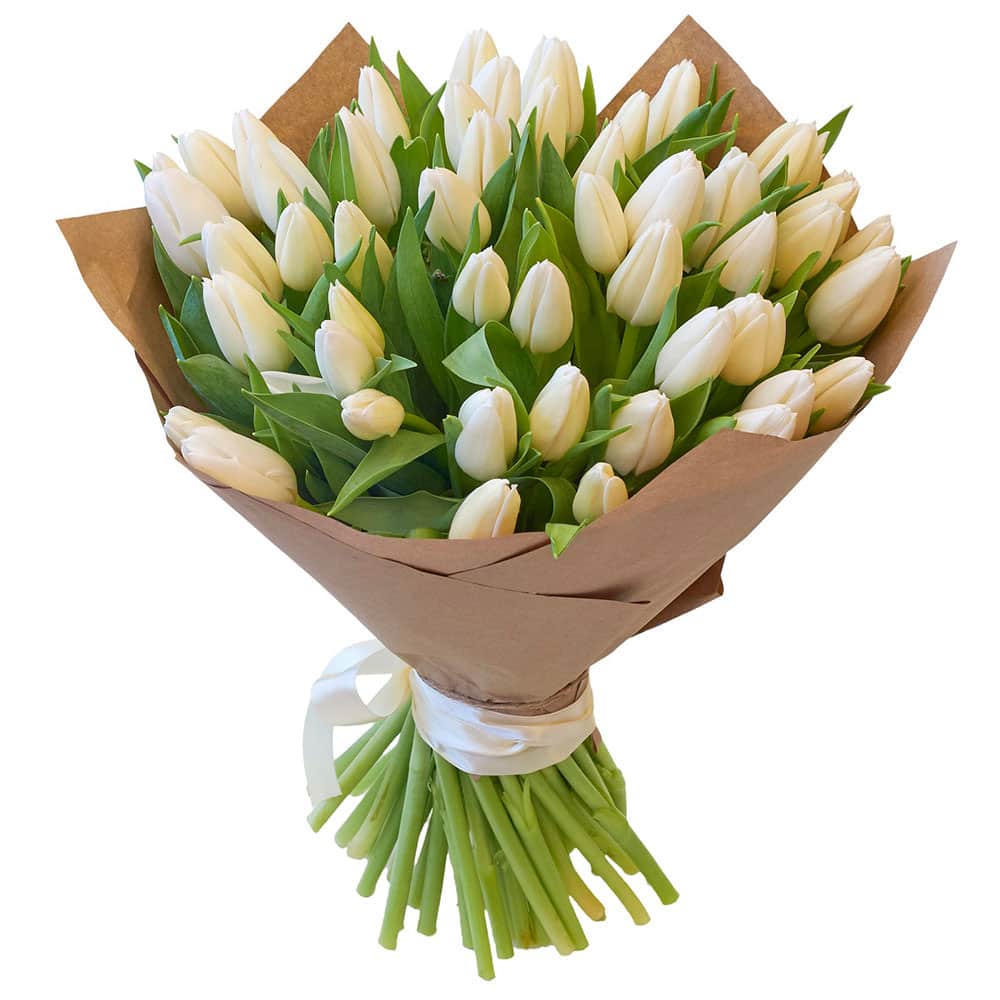 Тюльпаны белые с доставкой по г Гурьевск (Кемеровская обл): вы можете заказать букет в супермаркете цветов «Флормания» по цене за 180 руб.